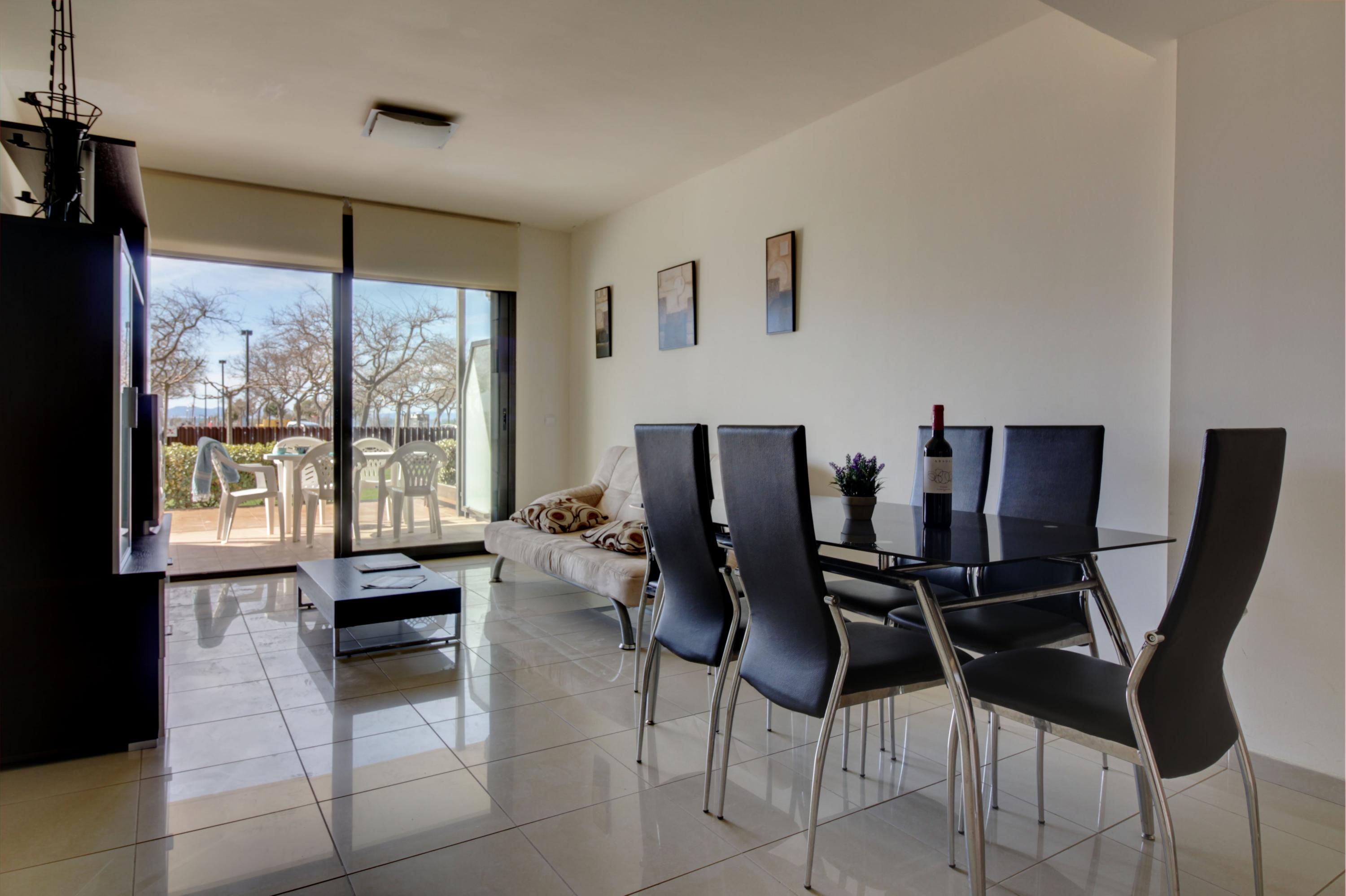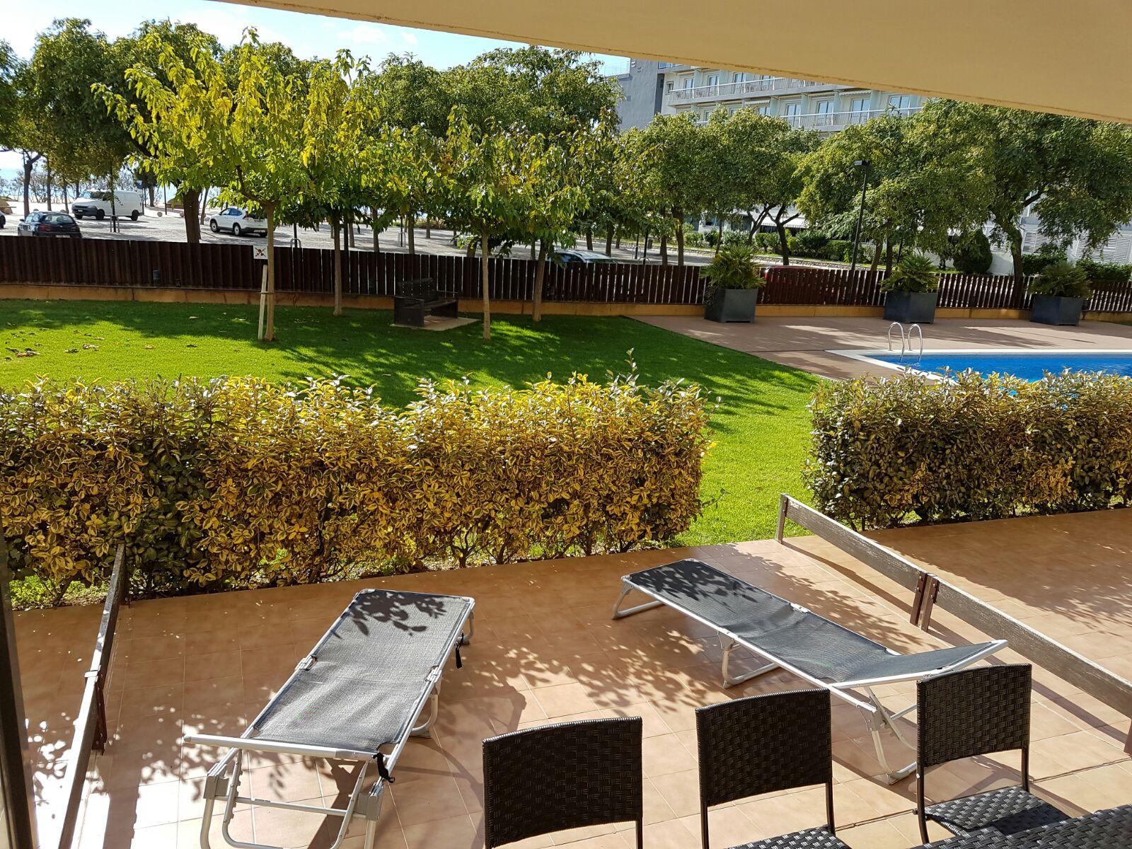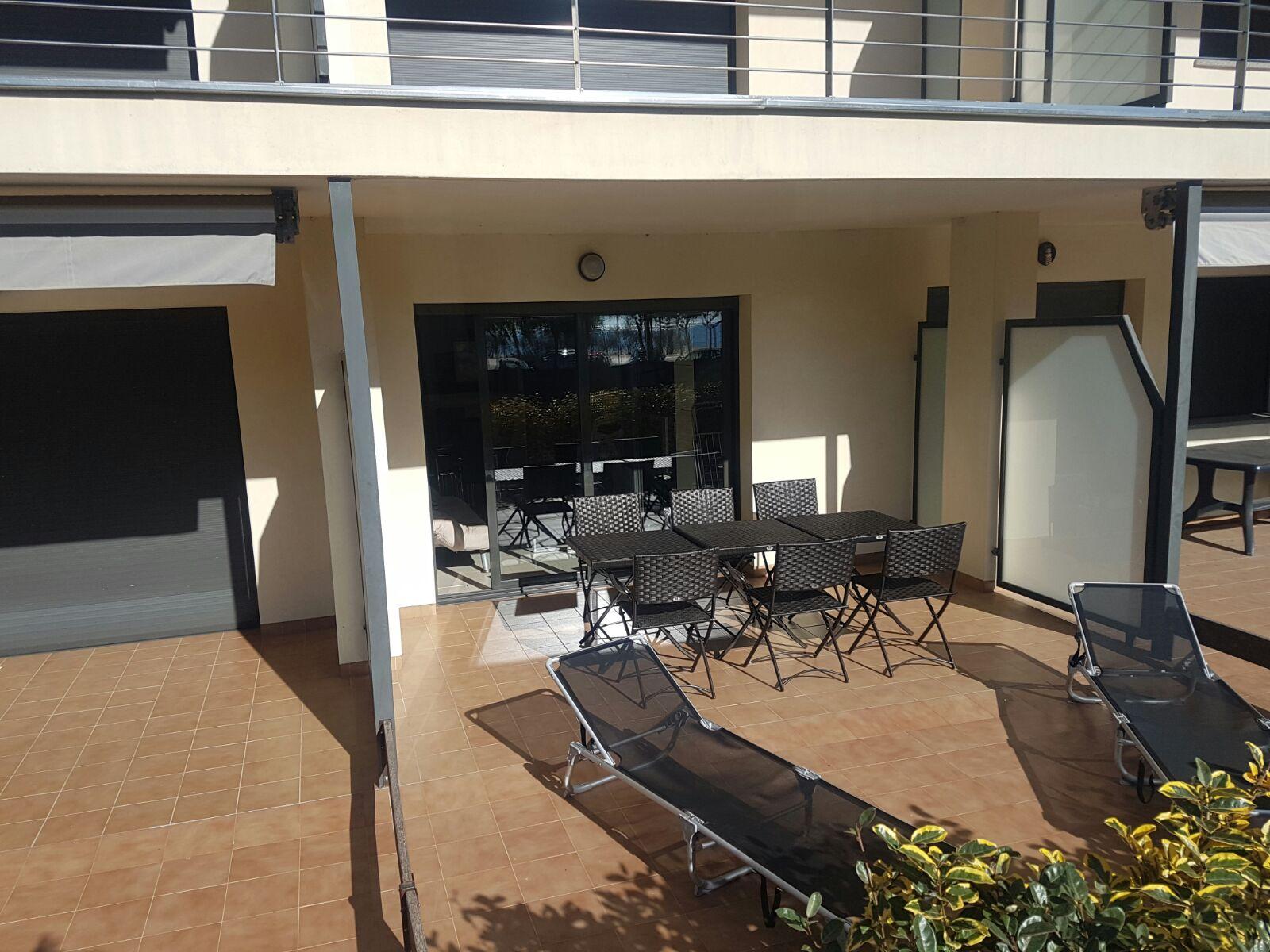 Ground floor apartment, well equipped, spacious with direct access to the garden and pool, located in front of the seafront. 25m2 terrace AIR CONDITIONING. Underground private parking. 60m2 for 6 people: 1 bed x 1.40 + bunk bed (2 x 90) + sofa bed x 1.40. PETS ARE NOT ALLOWED.