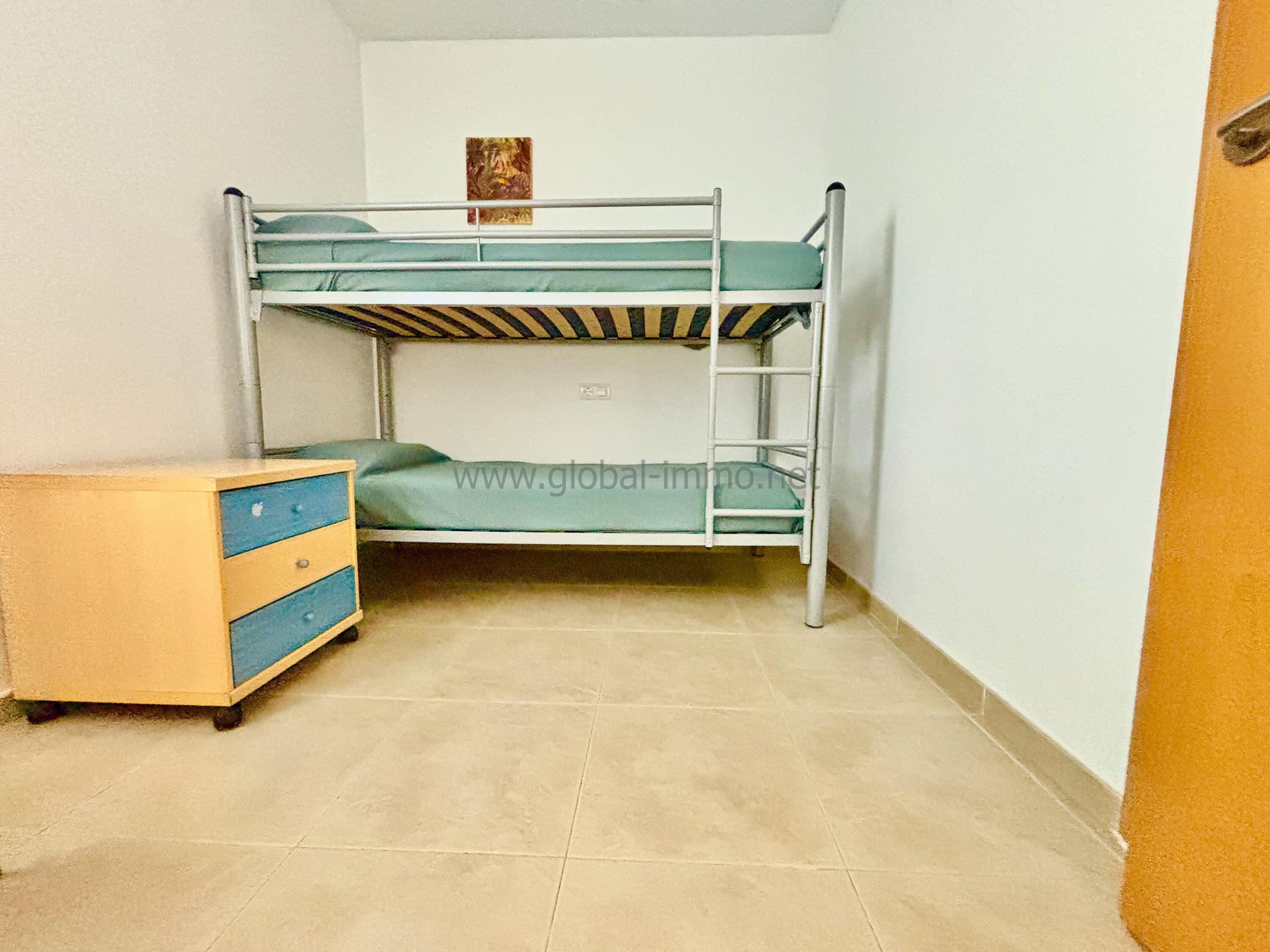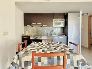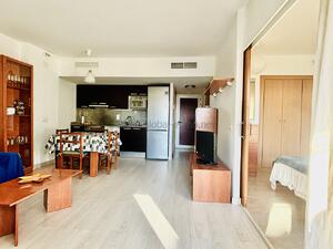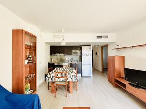 La vivienda, ubicada en primera planta, es cómoda y funcional, perfecta para familias, parejas o estancias tranquilas. Cuenta con dos dormitorios, un baño completo con ducha, y una cocina abierta equipada, integrada en un luminoso salón-comedor.